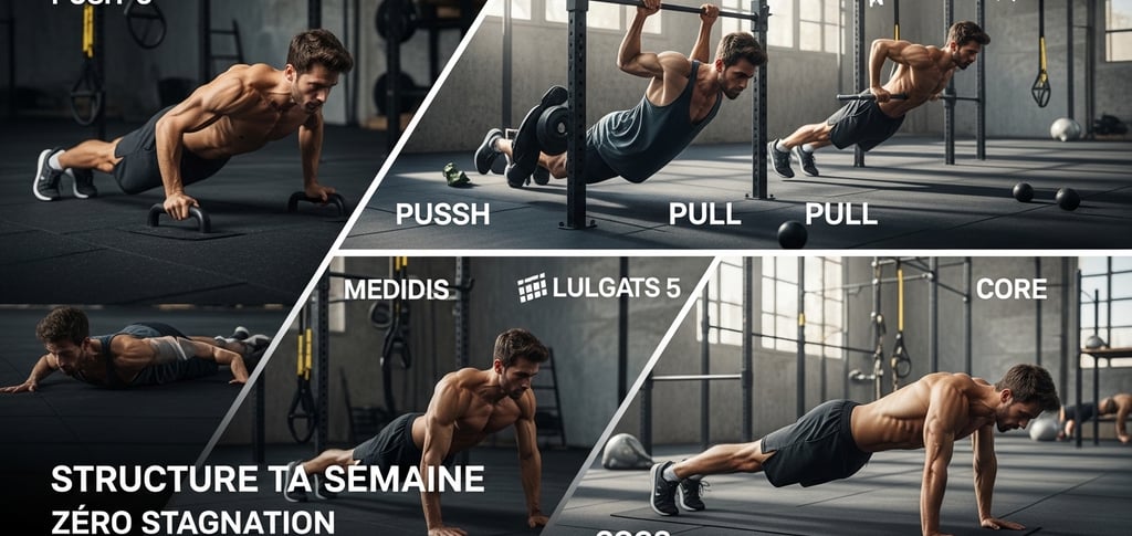 La structuration d'une semaine d'entraînement en calisthénie est cruciale pour éviter la stagnation et pour optimiser les résultats. Une approche efficace consiste à diviser les séances en différentes catégories : séances de type push, pull, travail des jambes et gainage. Une combinaison judicieuse de ces éléments permet de cibler tous les groupes musculaires tout en favorisant la récupération.
